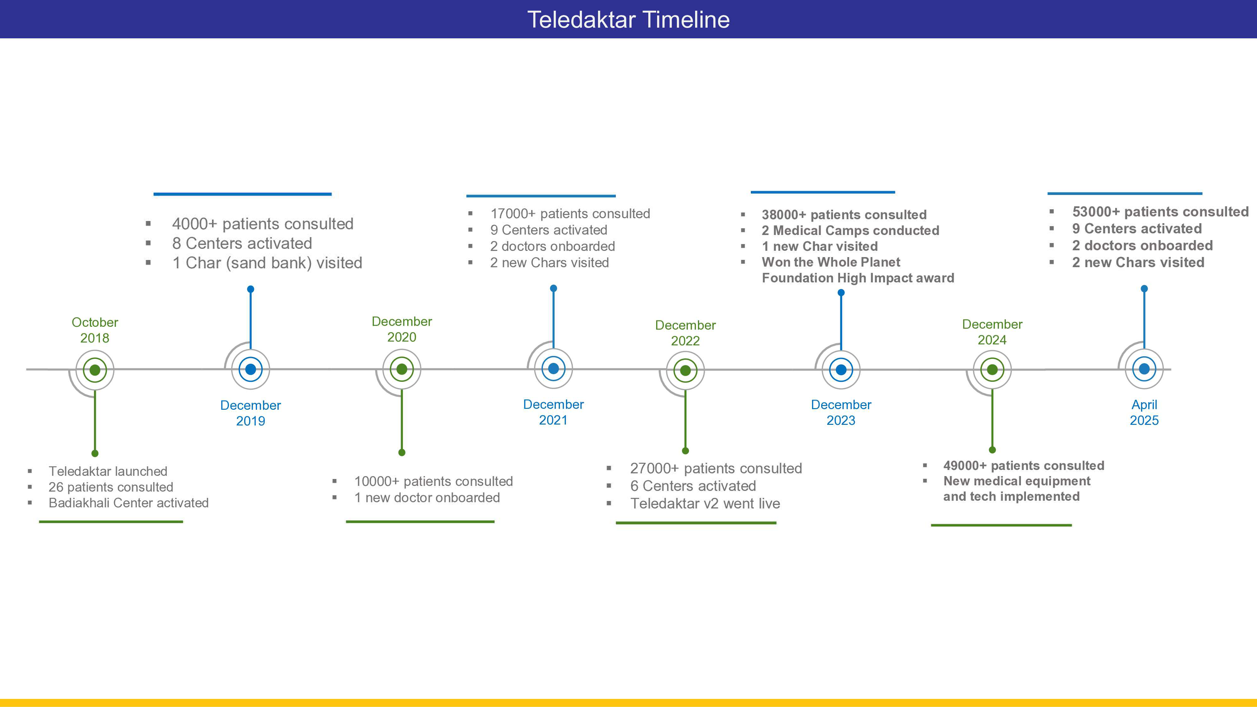 Teledaktar is a non-profit initiative of theSTEPS.org with the aim to make medical care accessible to the ultra-poor, especially women and children, who are the most vulnerable group of Bangladesh. Currently only 40% of our population receives some kind of state medical care with qualified health workers who are concentrated in urban secondary and tertiary hospitals.This makes it very difficult for the 70% of the population, who lives in rural area, to access quality medical care. In response to this social challenge the mission of Teledaktar programme is to provide free quality medical services to the poor and ultra-poor community who lives in rural and remote regions of Bangladesh.